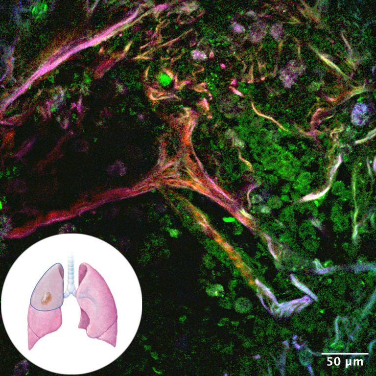 AI-based analysis of the effect of drugs on cultured biopsies of patients with lung cancer or fibrotic lung disease using 3D+T label-free HHG microscopy.